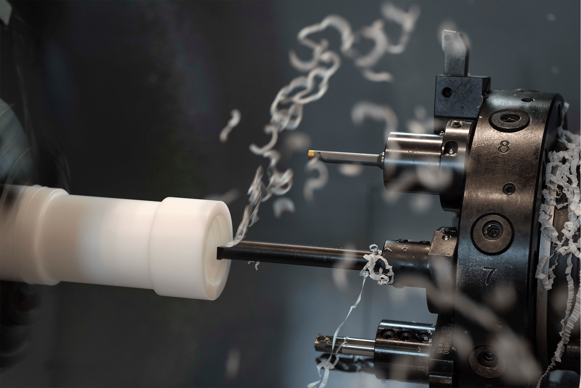 Von der Antriebswelle mit Löchern und Rillen, die in Verpackungsmaschinen für Salami eingebaut werden, vom einfachen bis hin zum komplexen Kunststoffdrehteil, von der Kleinserie bis hin zu großen Stückzahlen: unsere erfahrenen Fachkräfte bekommen alles hin. Unser moderner Maschinenpark ist mit 5 Drehmaschinen ausgestattet, die alles können – außer Kaffee kochen.
