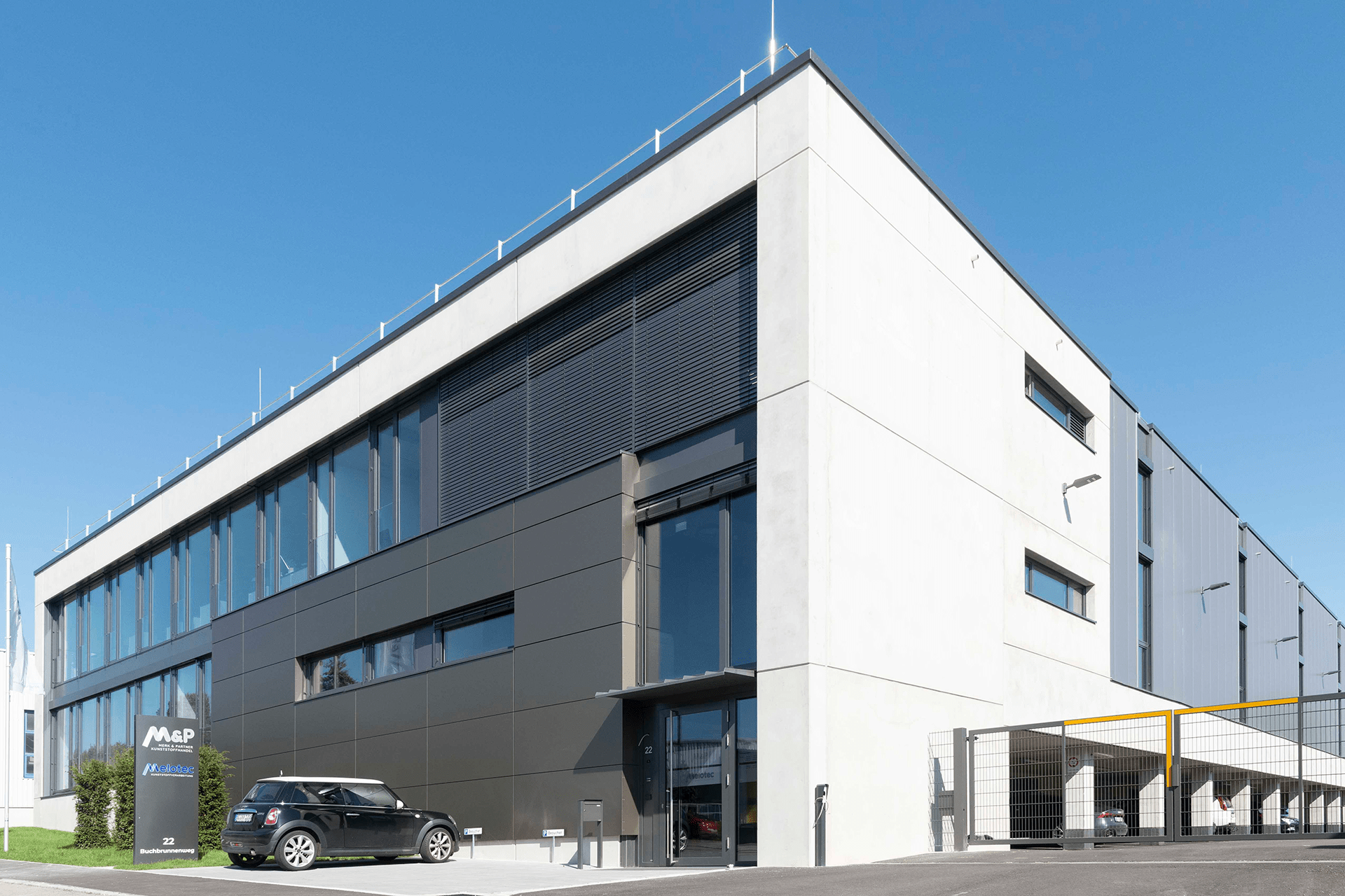1994 fängt unsere Unternehmensgeschichte an, als die Merk & Partner Kunststoff-handel GmbH in Ulm gegründet wurde. Schon nach einigen Jahren stellten die Geschäftsführer fest, dass sie die Fertigteile noch schneller an ihre Kunden liefern wollten. Eine eigene Produktion war die Lösung. So ging Melotec 2007 als Tochter der Firma Merk hervor. Ein Jahr später zogen beide Firmen zusammen unter ein Dach nach Ulm-Jungingen – wo wir heute noch sind. Mittlerweile in einem schicken, neuen Gebäude, das wir 2021 bezogen haben. Denn durch unser kontinuierliches Wachstum brauchten wir dringend mehr Platz.