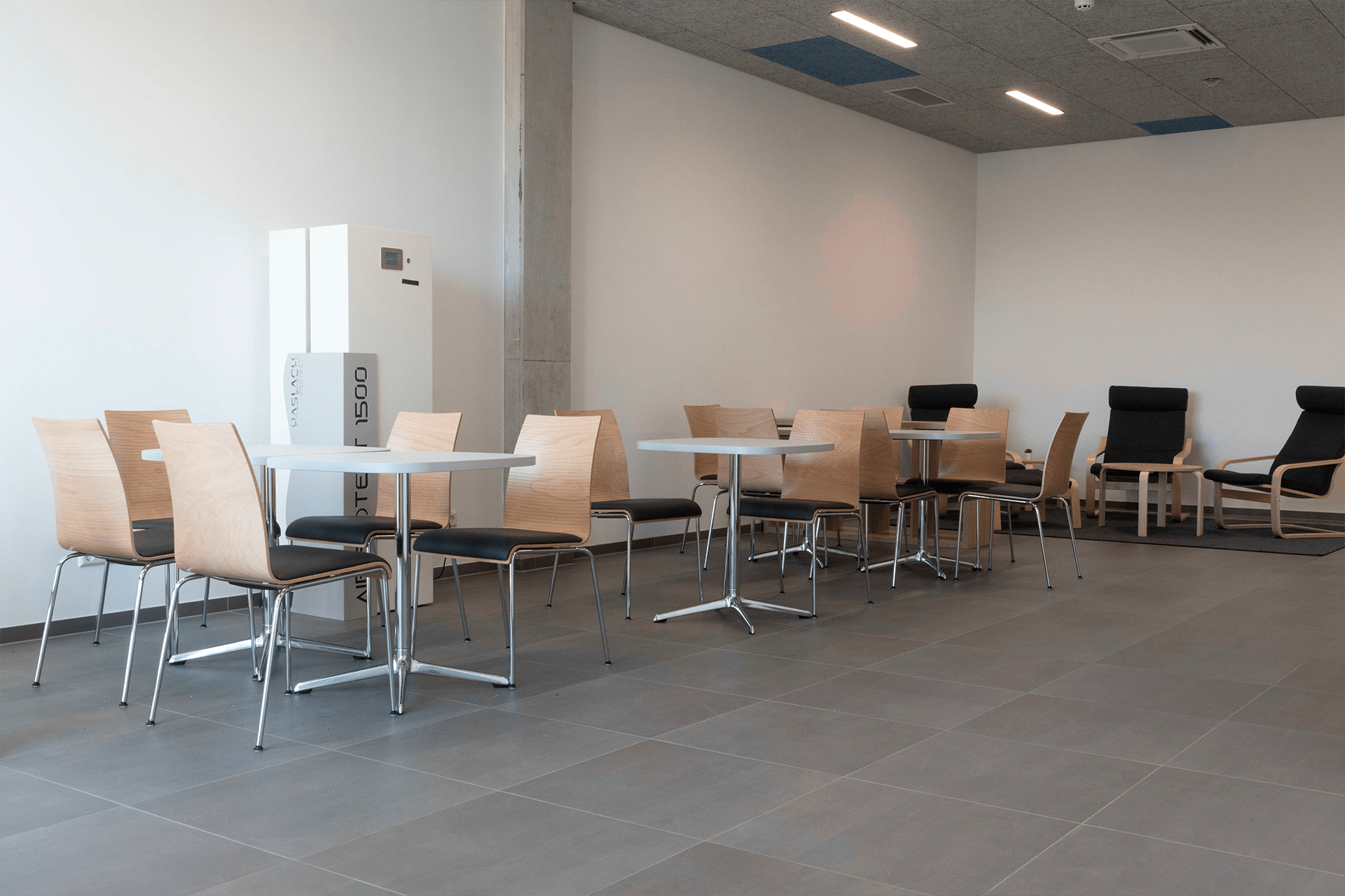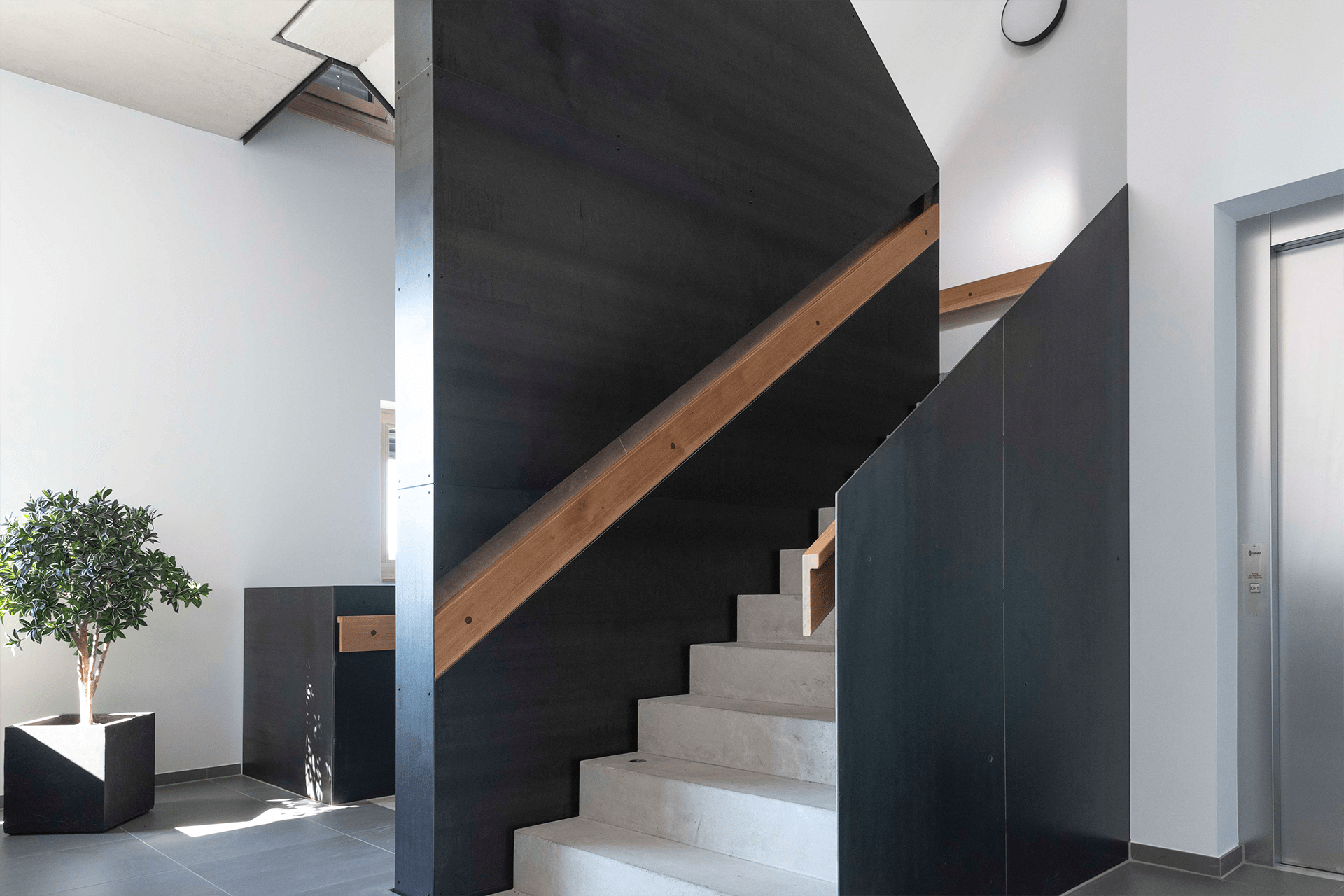 Bei unserem Neubau haben wir darauf geachtet, dass er ökologisch, hell, freundlich und komfortabel ist. So haben wir zum Beispiel eine Tiefgarage, in der jeder einen eigenen Stellplatz hat. Die PV-Anlage auf dem Dach versorgt uns mit Strom, mit der Wärmepumpe heizen wir. Eine Fußbodenheizung und -kühlung sorgt für angenehme 22 Grad in unserer 1500 Quadratmeter großen Fertigungshalle.